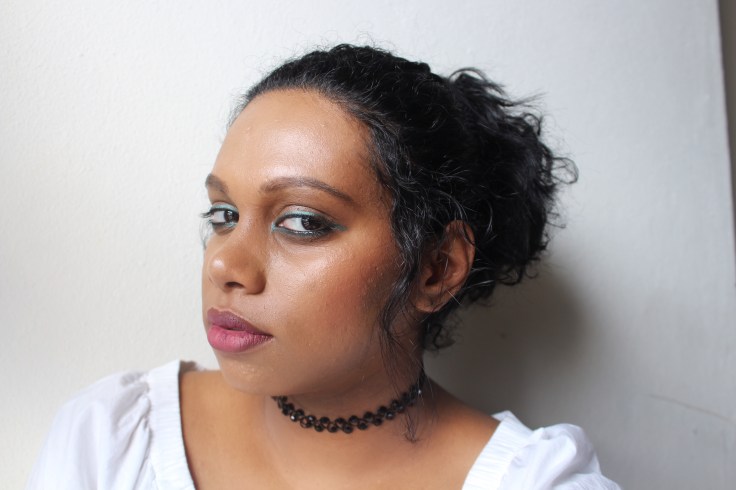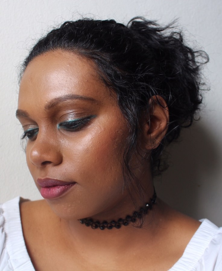 I am back with another make up look . I wanted to do some colored liner for a change . I normally stick with my jet black kohl pencil . 🙂 Anyhow i went for a green liner on the top and bottom lash . I smoked it out slightly and finished with a taupe shadow on the lid just for a wash of color. Instead of a nudge lip I went in with a pink lipstick just to keep the colored theme going