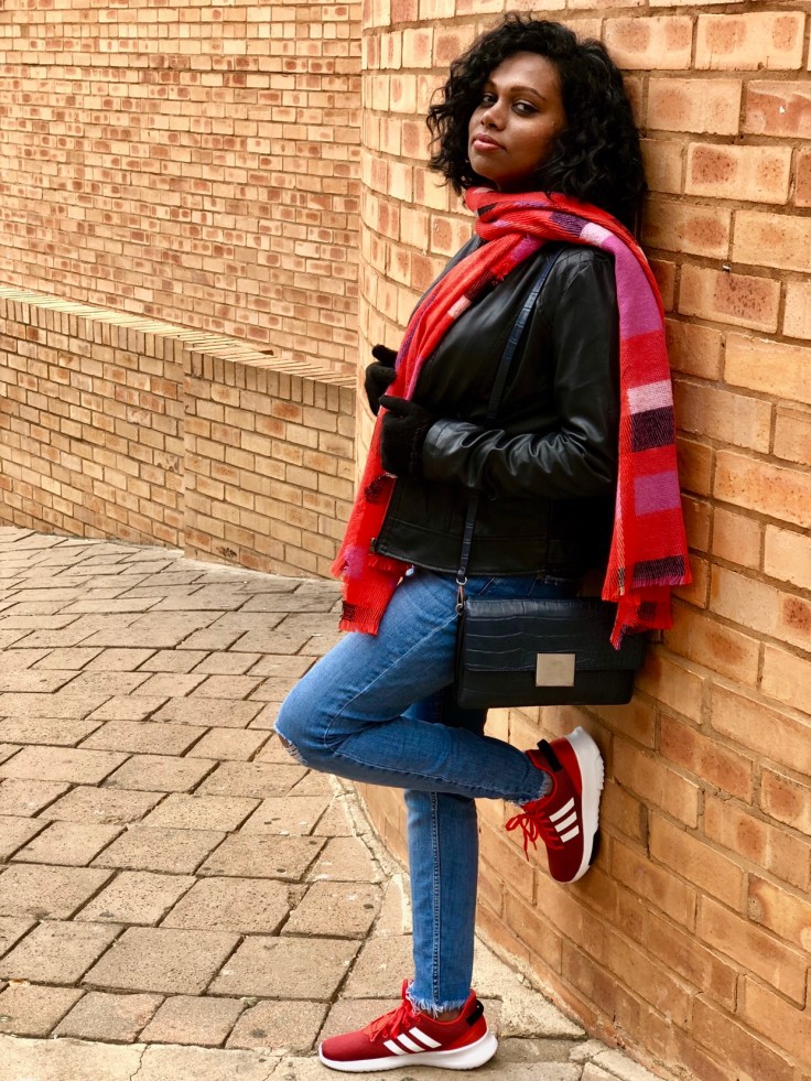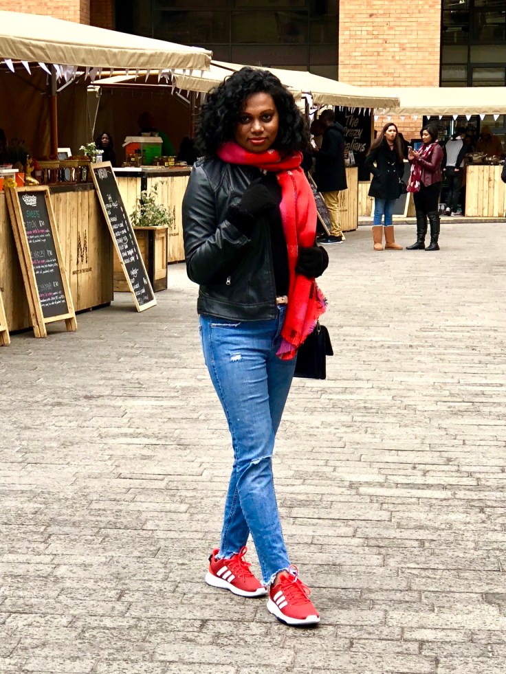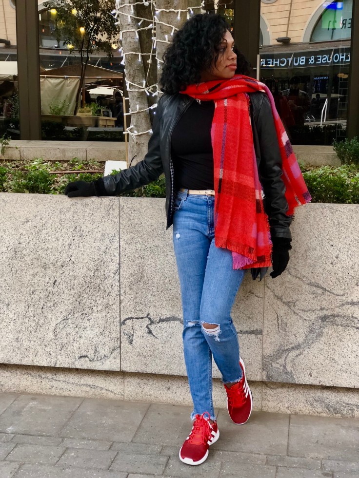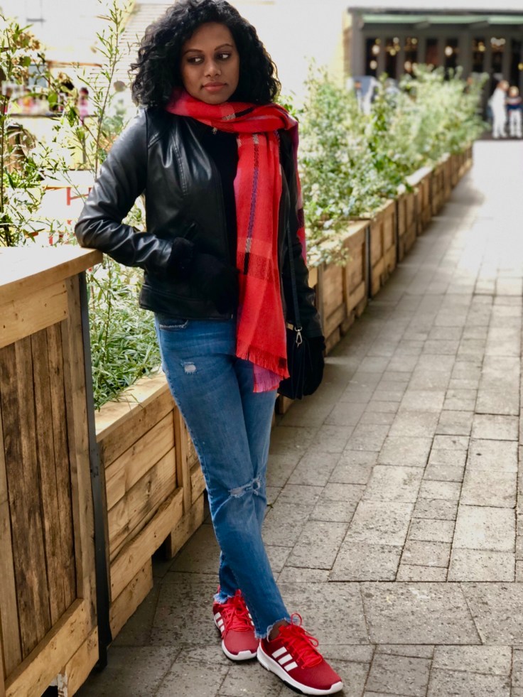 In my part of the world , we are experiencing quite a cold winter. So I decided to incorporate some colour into my otherwise neutral outfit. I went with this coloured scarf and a pair of sneakers for a sunday outing . Actually i planned the entire outfit around this shoes 🙂 Thats just me.